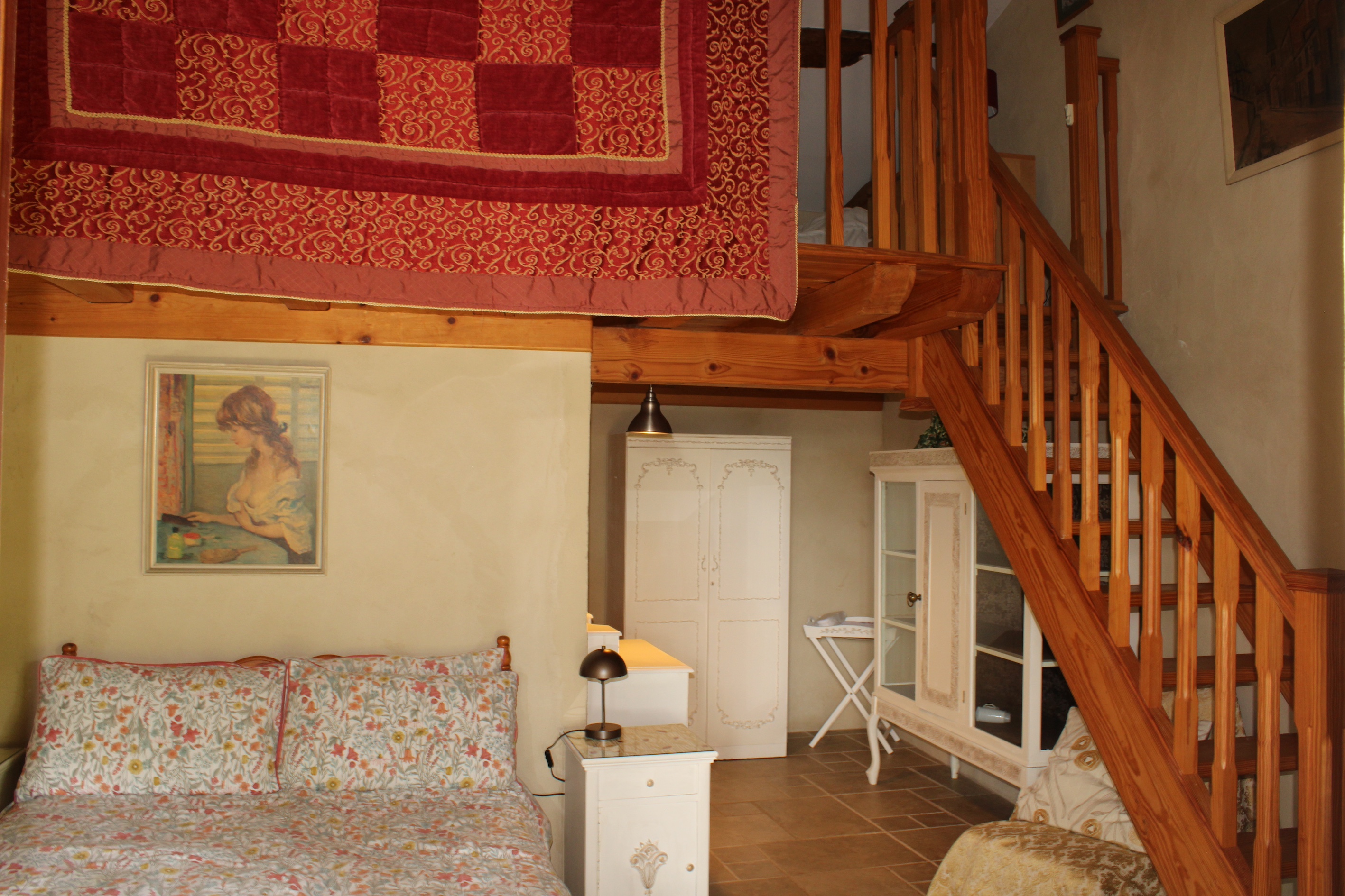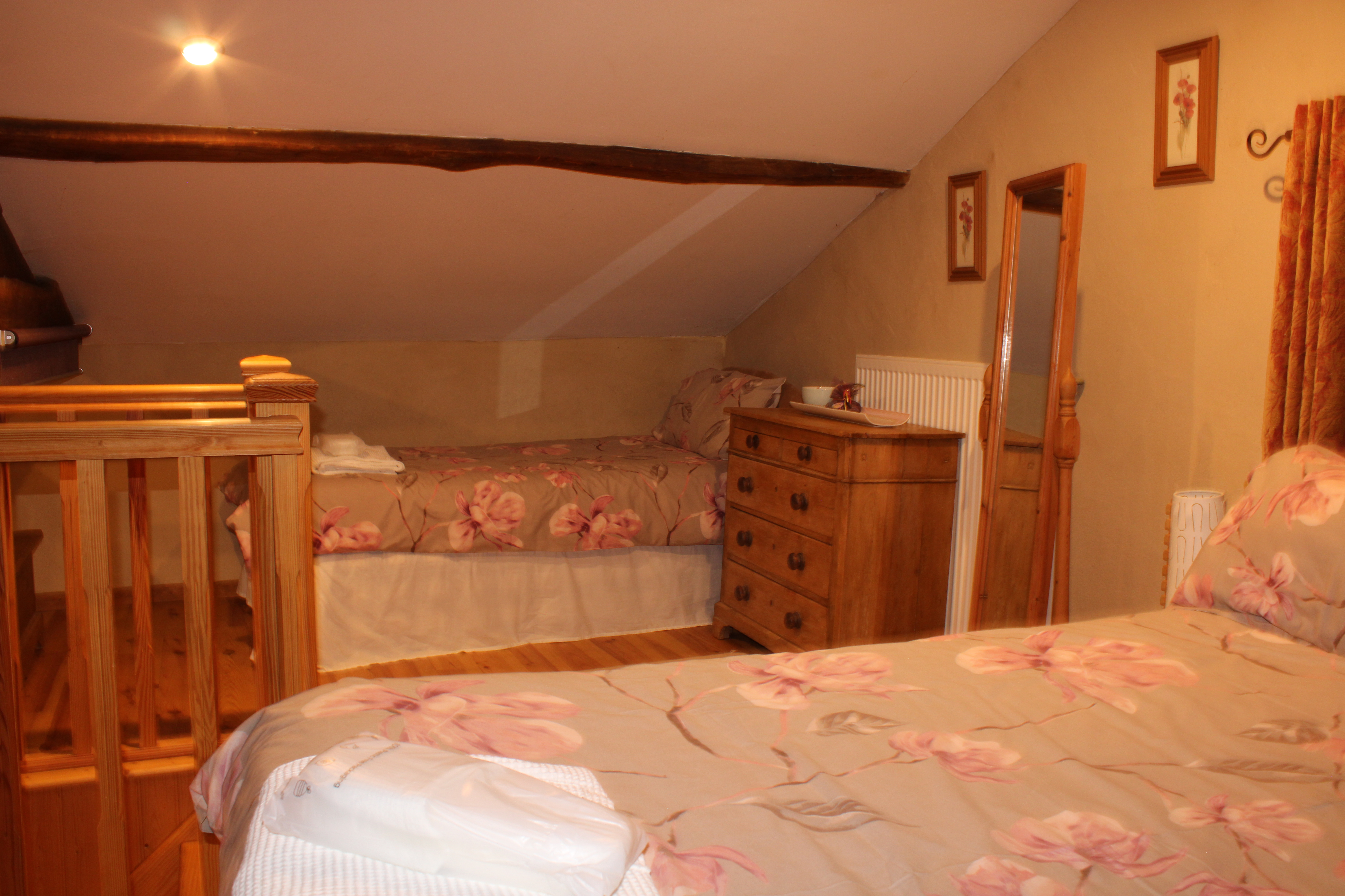- Mezzanine overlooking the lounge area with a double bed and a singe bed